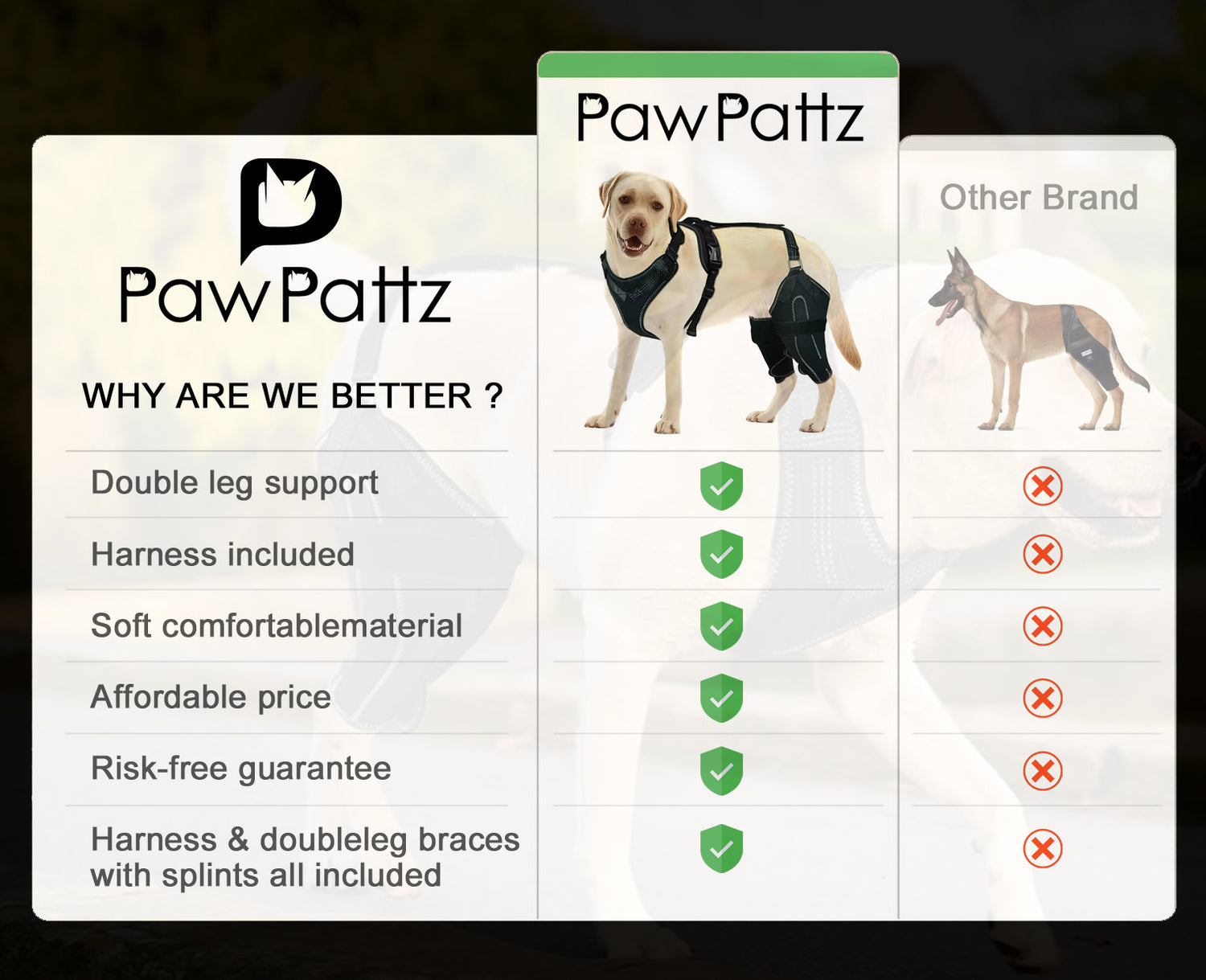 Knee Brace Harness for Dogs - Dual Rear Leg Support - PawPattz