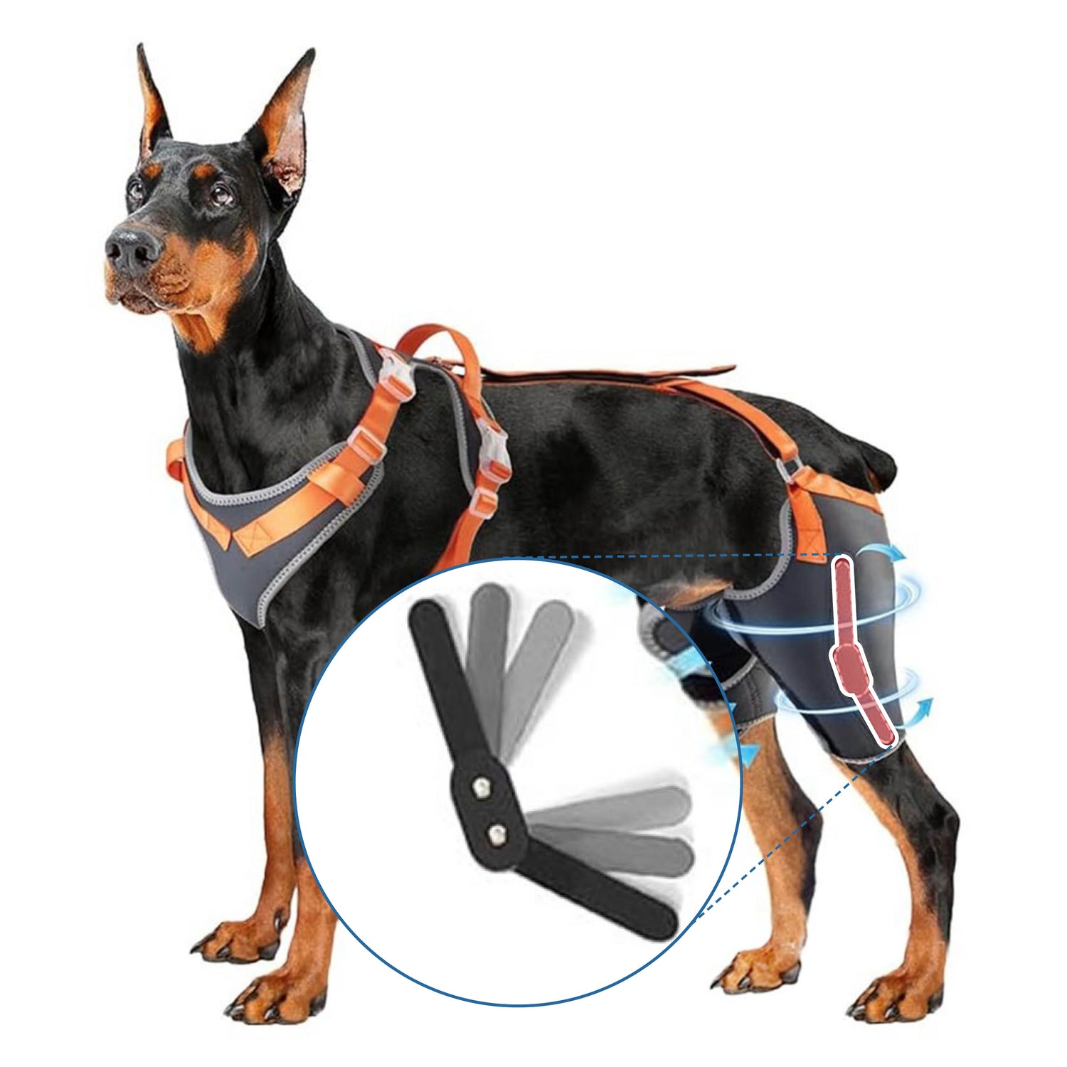 Movable external hinge: Movable external hinge adapts to your dog's leg movement, providing flexible support that moves naturally with their gait.
